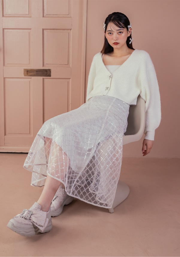 程よいモード感を残しつつ、シルバースタッズやシアーをふわりと重ねて儚げでガーリーなRANDAらしいデザインに仕上げました。