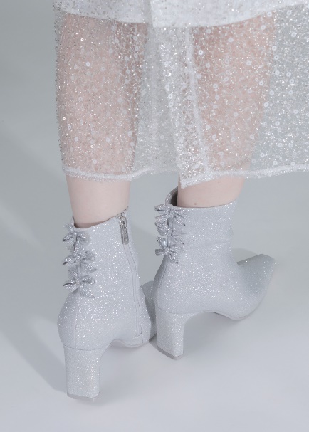 繊細に煌めくグリッターが足元をアップデートしてくれるショートブーツ。