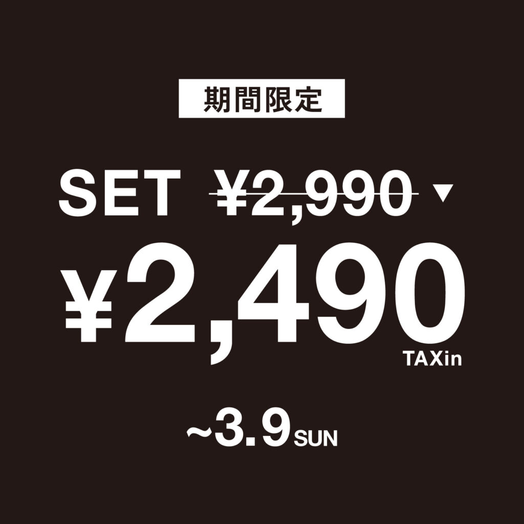 期間限定イベント!税込¥2,990のセットアイテムが¥500OFFに!