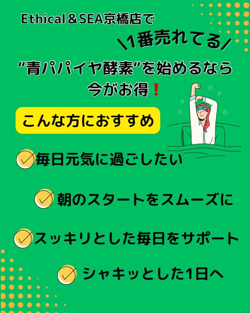 京阪モールEthical&SEA京橋店では、《青パパイヤ酵素》をお得に購入出来る特別キャンペーン中です✨