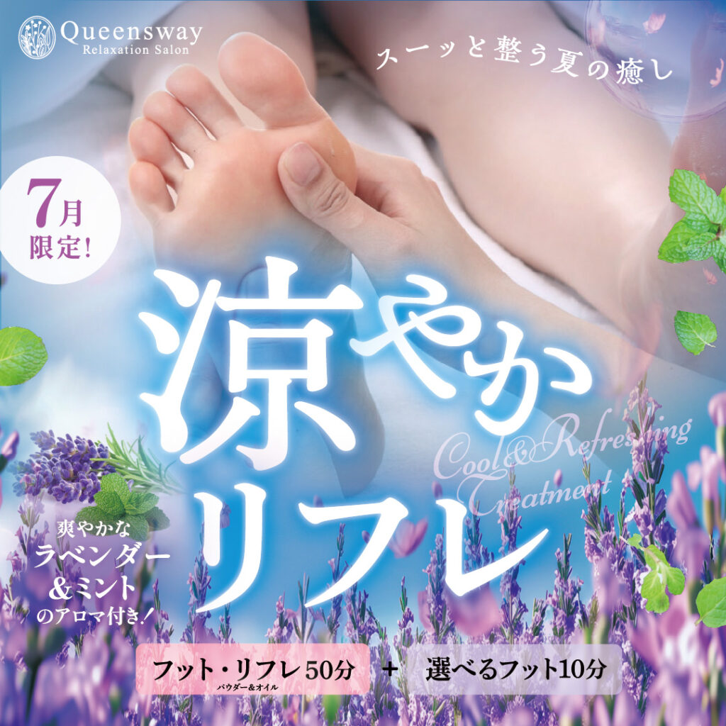 【7月限定】涼やかフットリフレ60分(施術50分)9130円→8525円