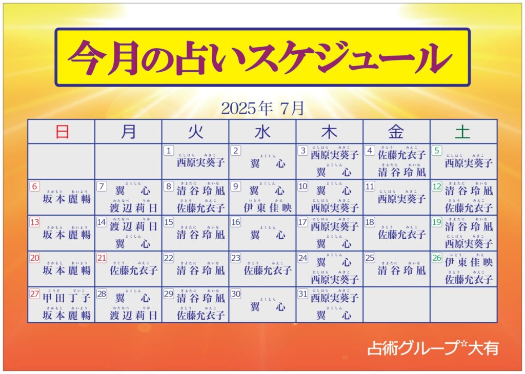 7月出演表